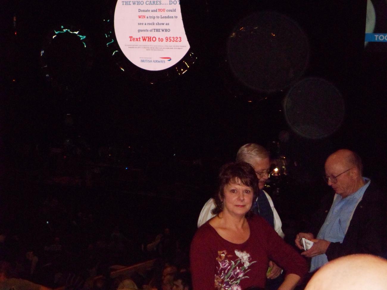 Mike & I went to see the Who in concert last night & it was great! To start the event off we parked beside a camaro Comrad in the parking garage. We were in the Cruise (our Camaros were safely in the garage at home) but could not resist protecting one side of a comrad. Then when we went to our relatively cheap nose bleed section seats they said they closed that section and gave us upgrade tickets to the first level! Then the concert was great. They played the entirety of the Quadrophenia album (yes album for you children too young to remember) and several of their greatest hits. No video but here are a few of the best pics we got.