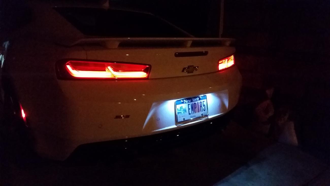 Since 1994 i have been leasing cars but the most recent car i got out of was a $60,000 2013 BMW 5 series with M sport package. While the car was fun to drive and had most loaded options i felt i was missing something more, much more after driving a 2015 Stingray rental at Budget rent a car in Florida 2 times The 6.2 V8 engine was calling my name after i came back to New York. I knew i couldn't get a Corvette at this time due to no back seat, i cant say too much for this new 2016 Camaro i picked up but it has one my 5 year old daughter can fit in to the booster seat comfortable is all i was caring about, same for my wife too lol, she was worried i could tell but we have a 2015 Nissan Pathfinder for the family trips, well some of them that is! My first American car was a 1988 Chevy Spectrum Turbo i had that in 1992, was a fun 5 speed car back in the day but nothing on the new cars. So to make this long story a bit shorter now, I was looking at the Camaro 2SS online before they came out this past year but still had 5 months left on my BMW lease. I knew winter was coming but after going online and seeing they had 1 White 2SS Camaro with all the options i wanted minus the Black Emblems at a dealer not too far from me i called and next day before Christmas Eve i was there working the trade in and deal. I couldn't resist at all! they took the 5 payments, most likey rubbed it into my new lease and Christmas Eve morning i picked up my new Camaro 2SS. Was raining and crappy weather the whole week, i was away but came home to a freshly bathed in my garage, Camaro SS! I love my new baby 100% This is one beast of a ride. The sticker was $48,875. I will post more about the options it has soon. I did get the upgraded $895 exhaust and magnetic ride jammy. I cant speak more highly about this car. Car and Driver car of the year made my day better after seeing that first day i got it i started coming on the forums here. Looks like a great group of people and look to get help and give help to others along the way! Today i tinted the windows and added the led license plate bulbs after reading here on the forums how easy it was, that was awesome and pictures coming on them as well soon. Pictures below are before i tinted it.... LOVE MY NEW 2016 CAMARO!!!
