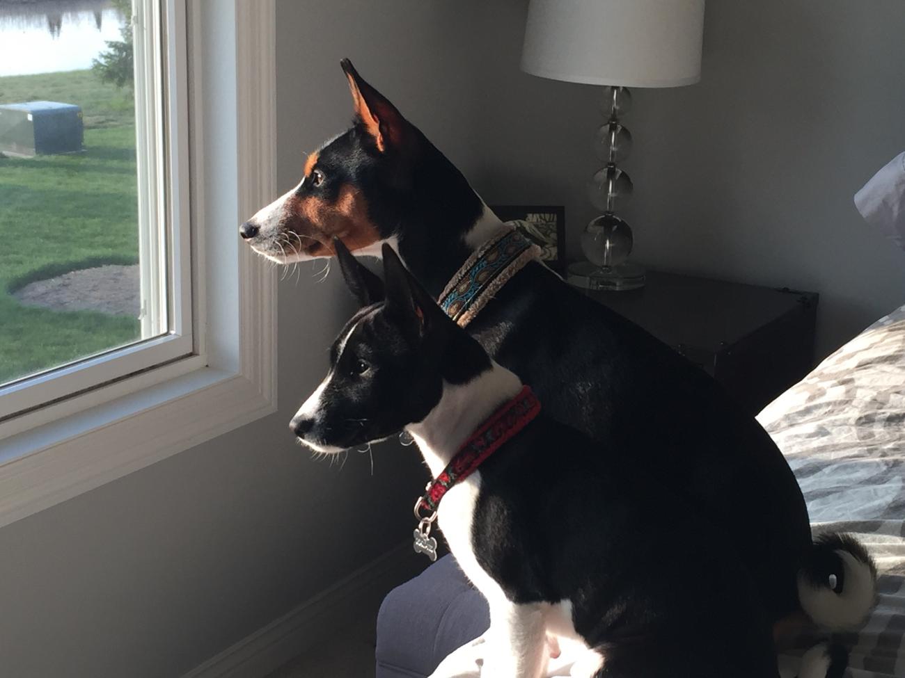 We have two Basenjis. Tri boy is almost two. Black and white girl is stil a pup.