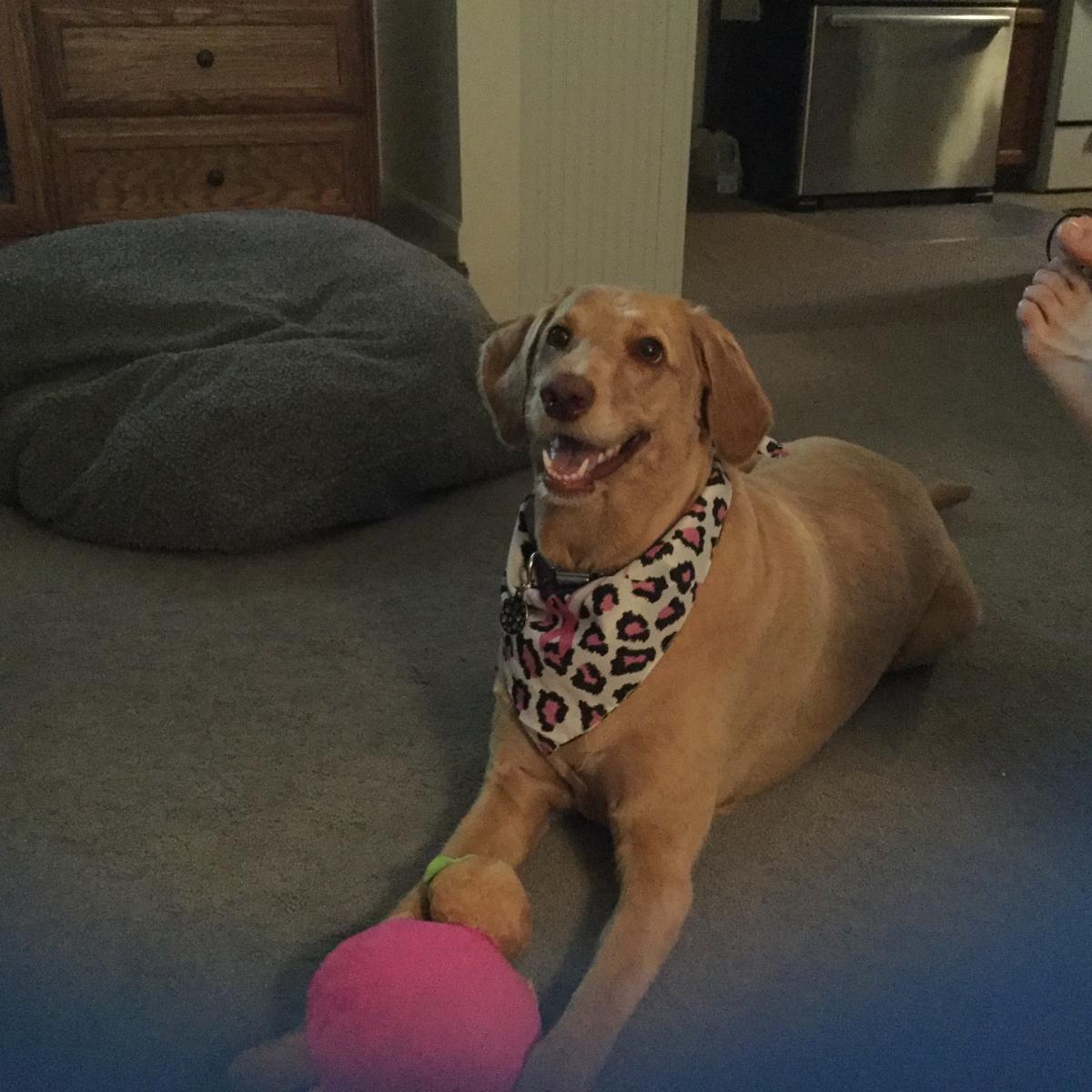 Jazzie Mae is a four year old Labradoddle. She is a superior frisbee catcher and loves to chase her dog cannon launched tennis ball.