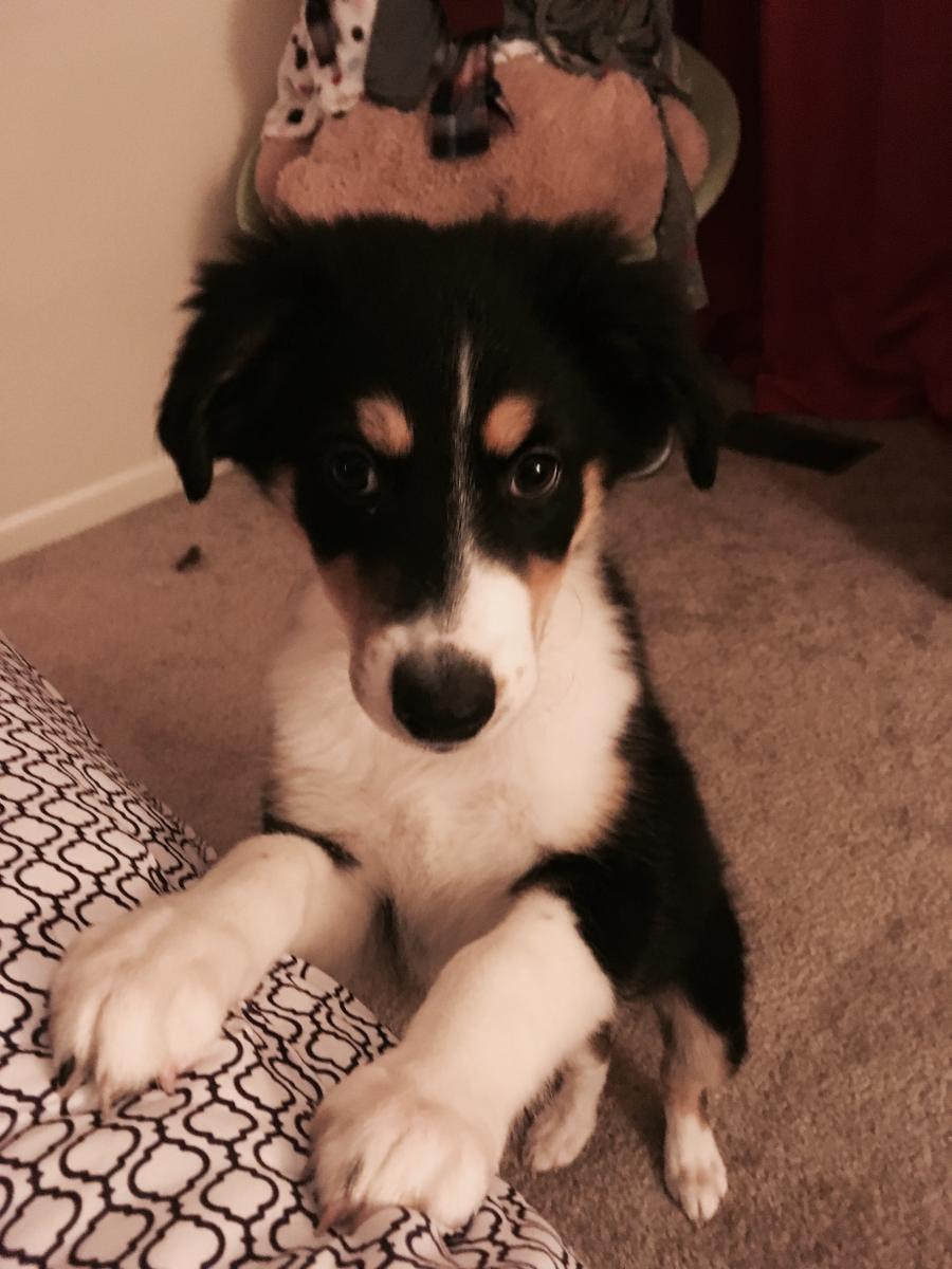 Australian Shepherd, he's currently 5 months old, only 3 months at time of pictures. Love him to death!