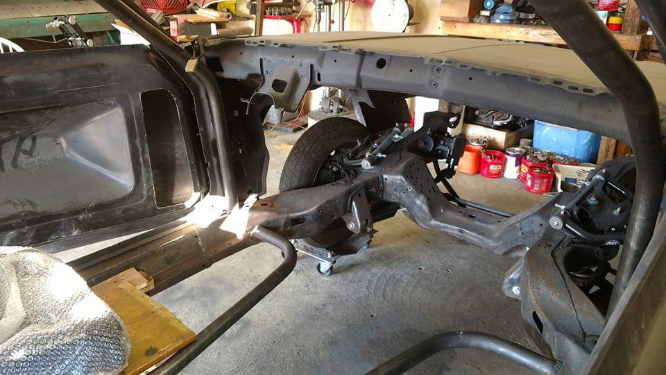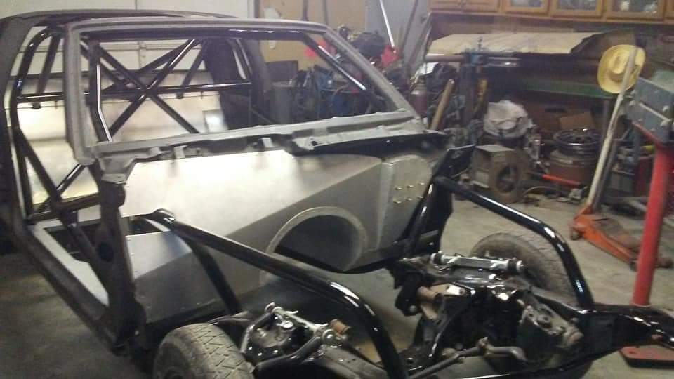 It has a 5.3/t56 swap with fuel injection. Fiberglass doors, hood, decklid. Aluminum floors, firewall, trunk and dash being built, caged with qa1 type r control arms up front, trailing arms in rear with ssm boxed rear trailing arms. Qa1 coilovers front and rear, blazer spindle swapped and yeah. It has t tops. Lol