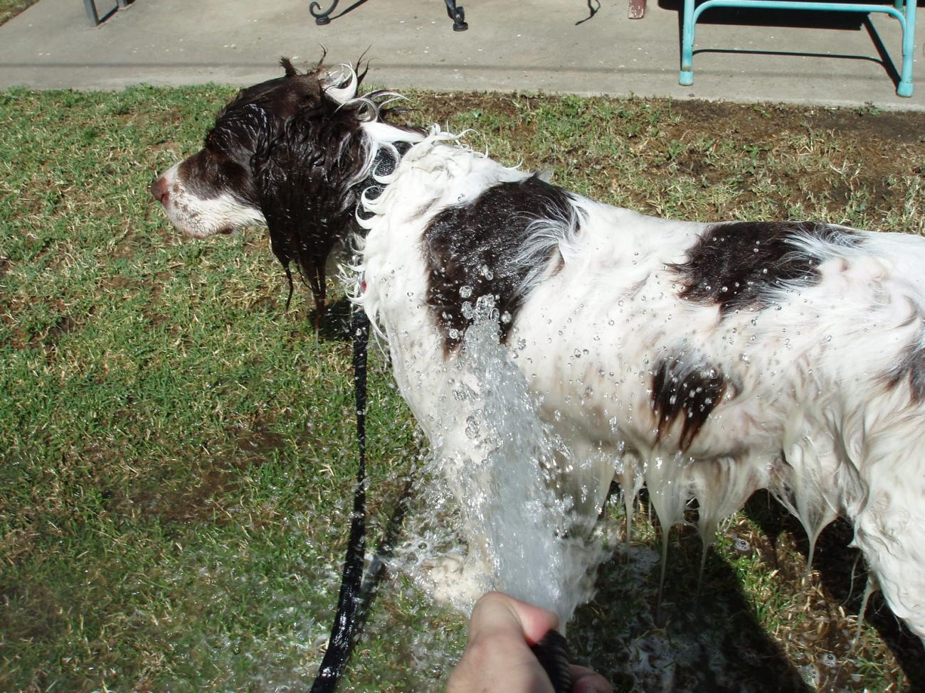 ![]() The Bullmastiff went first...and she doesn't really like bath time. Oh well...!