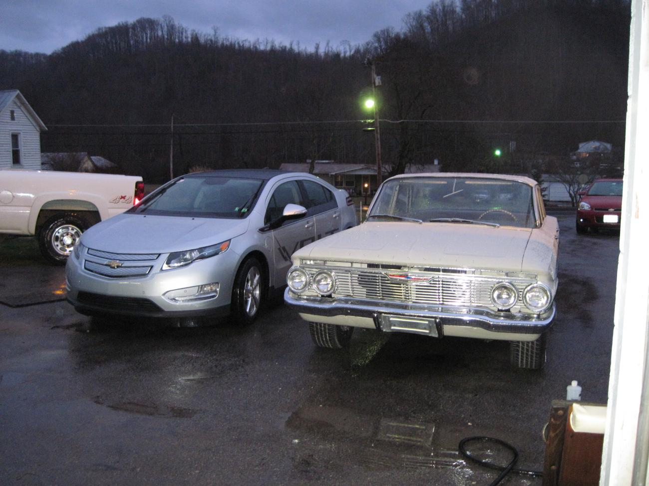Here is a pic of it beside my Dad's 61 Bel Air. Things in the automotive world sure have changed alot in the last 50 years.