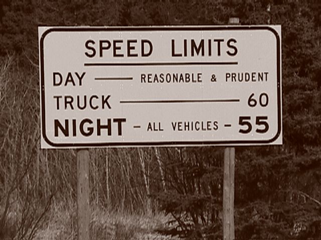 just in case ya don't know......that WAS the sign you could see driving in MONTANA years ago.....they did away with that in 1999. But I got to see it first hand many years ago on a trip. The ALSO had billboards on the highway with a picture of a trooper with his pointing at you like the old Uncle Sam posters with the signage "THEIR IS A LIMIT" underneath it. I took a picture of the first one I saw!