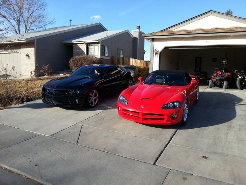 So I missed my corvette a little too much..so I went and pulled the trigger on a viper srt-10. Got a hell of a deal from my buddy at his dealership. Now I have a two seater again..and my camaro. Cant wait for the track to open! Theyre both pretty fun. Just cant drive the viper when its too cold. Heres a few pics of when I washed em earlier..