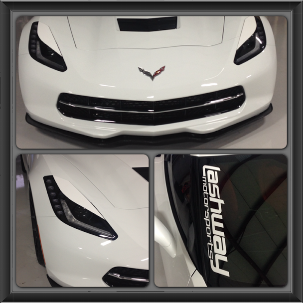 What do you guys think? We had some white vinyl laying around so we tried it out....if it sticks, we'll have the lenses painted so they match the white on the skin of the Vette.
