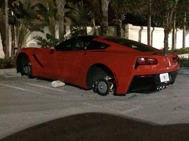 Ow! That sucks. My guess is the car had some really expensive aftermarket wheels. I would think it less likely someone would steal a set of base factory wheels. Must have been a 1LT too. 2LT & 3LT have a tilt sensor as part of the alarm, that goes off if the car is jacked up.