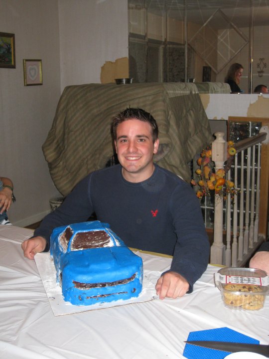 just turned 21 on march 18th...so my cousin who thinks he is the cake boss all of a sudden has been experimenting and making different cakes for different occasions such as: a Football field for the SuperBowl and a Purse for my other cousins bday....So this time he decided to make my car..needless to say it came out great and tasted even better...also remember it was his first car lol...+ its the thought that counts!!! Well here are some pics.