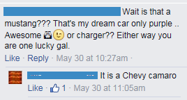 The reason I thought of this, was a post on my wife's FaceBook page, when she announced her new Camaro (complete with pictures of it being rolled off the truck in front of the Chevrolet dealer).