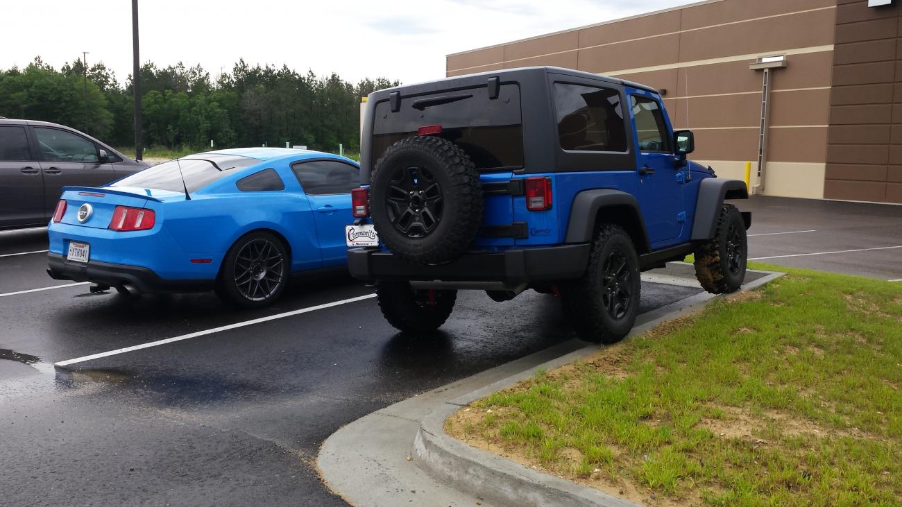 Looks like your Jeep is afraid of that Mustang.