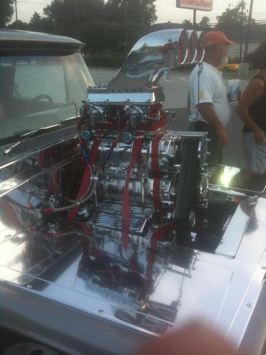 You are NOT seeing things. That guy has blowers on just about every car/truck he owns....This truck is actually his Wife's ride. The yellow car was the one he rolled in with tonight.....but he has many more vehicles.