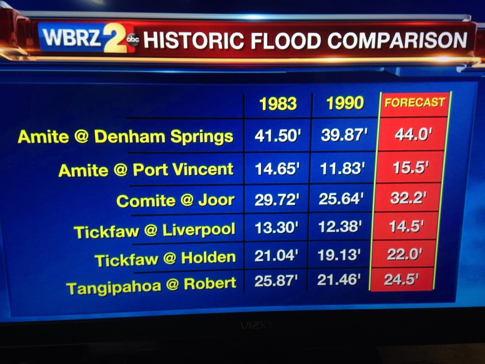 This reminds me of a hurricane without the constant winds. It is amazing to me at how heavy water is, that the clouds can hold that amount of material. Some places got so much rain so far, that it is off the scale. Still pouring!!!!! Check out a few river stages, 1983 was a record year, this will be above that.