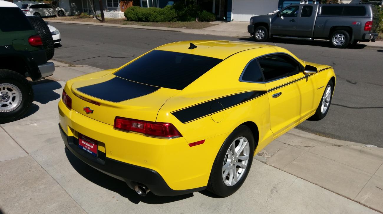 Traded my ‘13 Blue Ray Metallic 1LT in on a ‘15 Bright Yellow 1LT. Added stripes, red bow tie insert, headlamp tint, chrome door handles and chrome window trim.