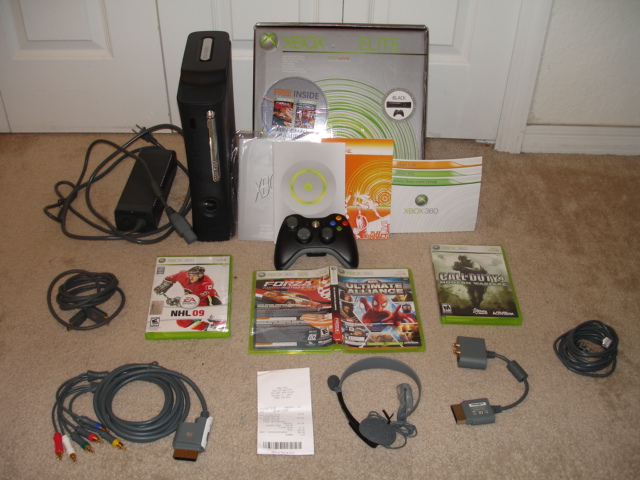i'm selling my xbox 360 elite. everything comes with the original packaging, even the plastic bags for the cables. I bought the console on 11/17/07, receipt on hand! the console is like new and has always been kept in a clean and safe place away from the dust. I'm the only user, the console has never been abused by kids. never had a RROD (red ring of death). I'm selling it because I don't have the time to play with it. see pic.