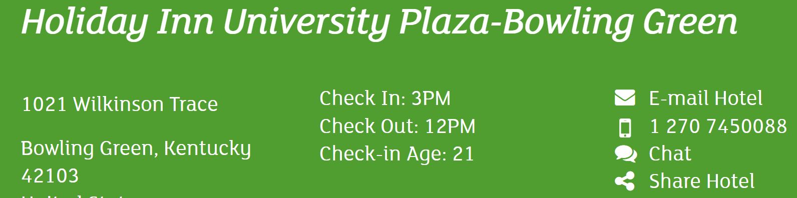 Reservation Instructions for Groups with codes (2) options: Online 1. Go to: bowlinggreen.stayhgi.com 2. Select your dates in the upper right hand corner 3. Under the box (check availability) select (add special rate code option) 4. Enter: Camaro into the box next to Group Code 5. Select the (check availability box) 6. Your selection of room types and rate will appear Phone In: Please call 270-781-6778 Give dates of your stay Request rate for: Mammoth Rate: $129.00+ applicable taxes Make reservations on or before: July 5, 2019 for the special rate Hilton Garden Inn Bowling Green 1020 Wilkinson Trace Bowling Green, KY 42103 270-781-6778 Courtyard Marriott Guests can call the hotel directly at 270-783-8569 and ask for the CamaroFest 9 rate, or reserve online using this customized booking link. |
