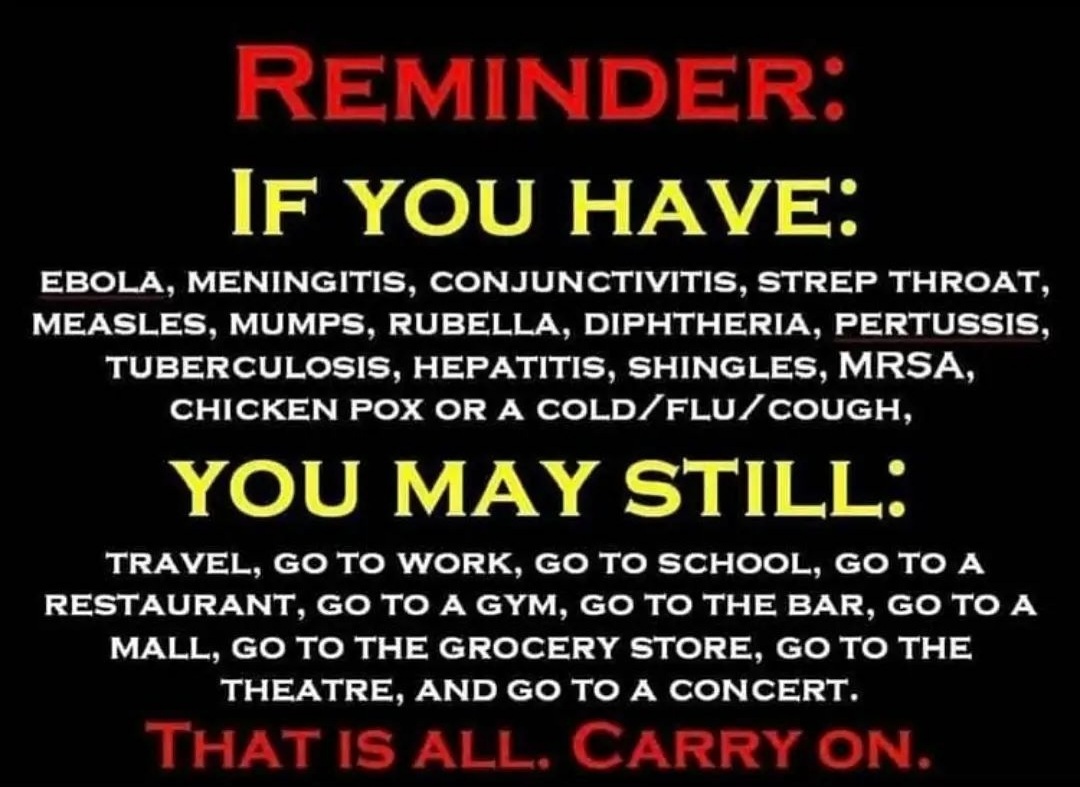 What are you going to do when you are sick? Go to work and use those vacation/sick days for when you are feeling good and can function. I bitch at those people all the damn time, if you are sick - stay the **** home. We have all created this cluster.