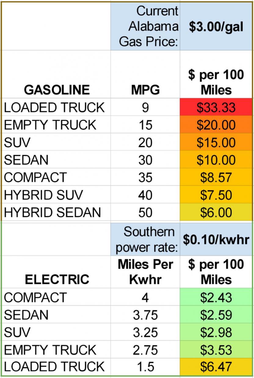 The tax component of gasoline and diesel needs to be factored into the EV cost. State and Federal are not going to go unpaid. It will be transferred to a mileage tax.
