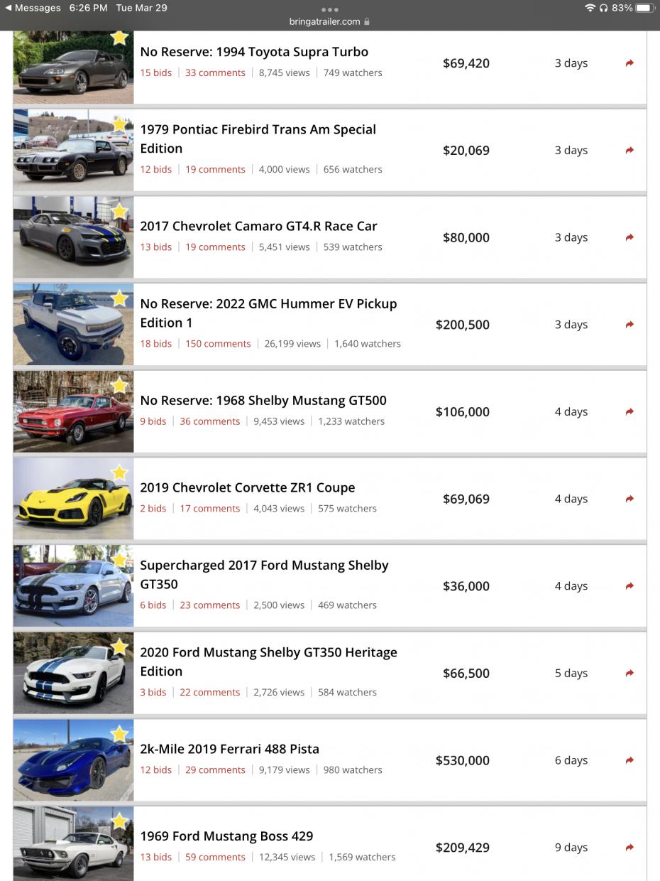 prices are insane like most auctions to get a nice older ride you need deep pockets and a thick wallet. Seems like the rust buckets on the local corner bring insane prices anymore as well. I think the wealthy are snagging up all the ICE classics while there available. I've all but given up looking for some decent classics that where on my list. Gotten to rich for my blood over the last year or two.