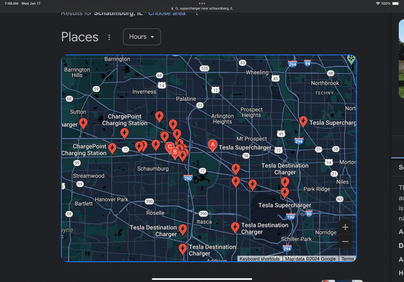 Only a little cursory investigation reveals that there were two things not working that day. One out of roughly 20 supercharger lots in the immediate area and the collective brains of the drivers that showed up at that lot minus a clue of how to just go to any of the nearby chargers that were working just fine. That’s like getting to your favorite gas station and realizing the pumps aren’t working and not considering that you can just drive a little further to the next station.