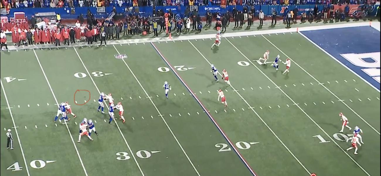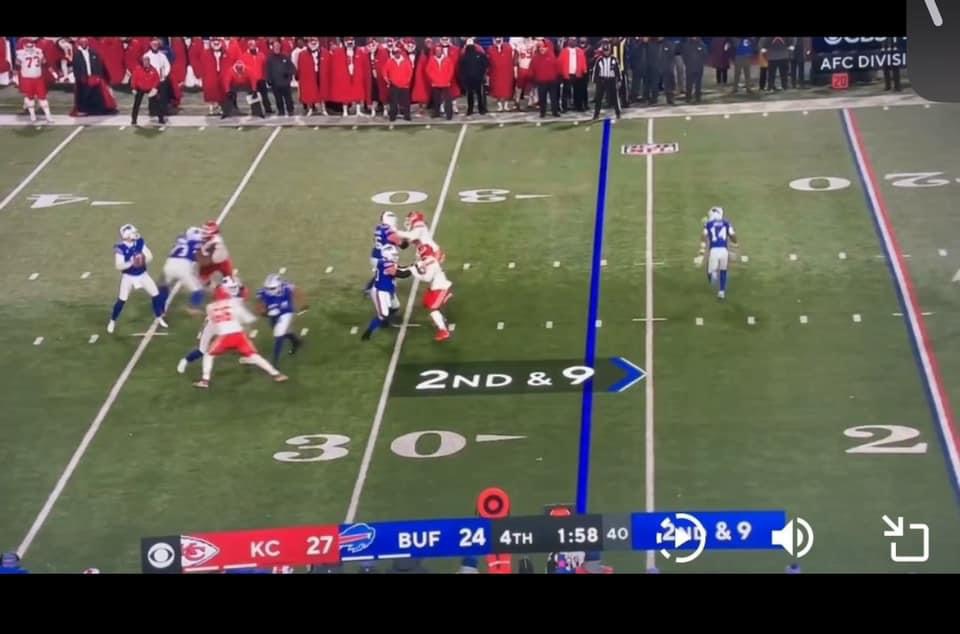 ![]() The Chiefs were in zone he wouldn't have got very far. So Bass gets to attempt a field goal 5 yds closer ![]() Besides just look at where Jones has pushed Dawkins the throw would be impeded at best and if you also look the 2 DT's are not pass rushing. They are waiting at the second level to bat a pass down. Spags rested Jones all day as he was getting double teamed. He lined up 90 on Dawkins all day and he had an easy time of it. When they got to the last drive in particular the last 5 minutes in KC territory his brilliant strategy came into play and the Bills line and players did not adjust. 95 was on Dawkins straight up and he was betting on no double team and he was right Karllaftis got the double team from Brown and Torrence on the right side. A blocked pass a forced fumble and 2 impacted throws later the Bills season fate was sealed ![]() I just want to add that I really don't want my QB checking it down at that point in the game and Shakir is coming open in the end zone and Allen is going for the go ahead score like he should.