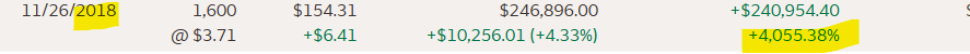 This is my 4th block of NVDA stock, my best performing one. Purchased in Nov of 2018. I have 12 other blocks, and with todays record close, I've never lost a dime in this position, over 7 years. I cant say that about any of my other investments!!!!