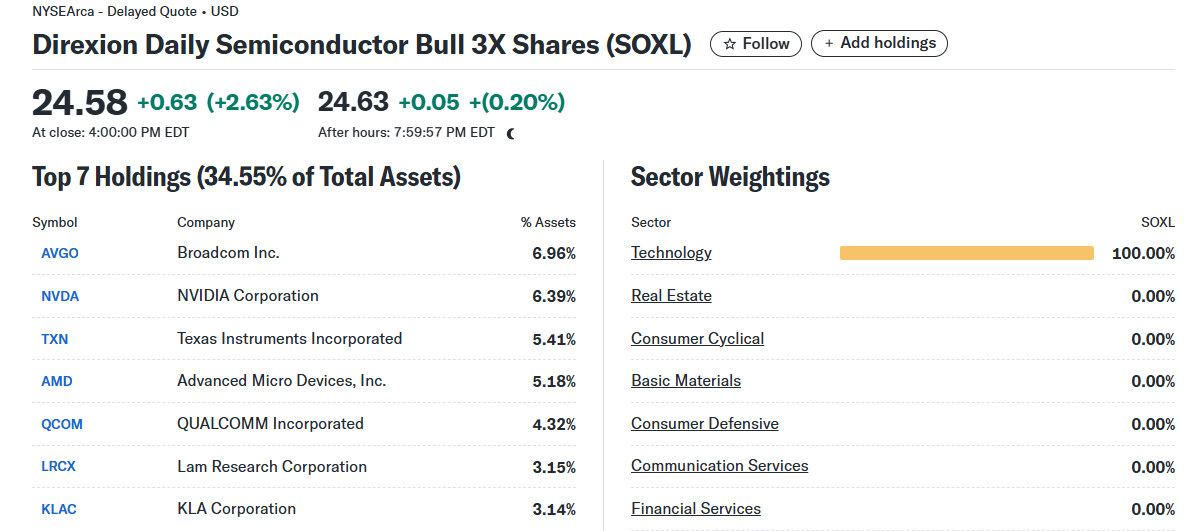 Martin, here's something to look at. SOXL. It's a 3X leveraged Digi Chip stock with huge exposure to all this "Data Center" hype, pushing the market higher.