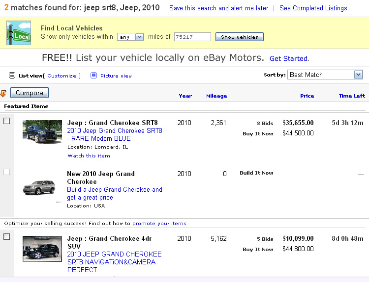 Have you considered looking on eBay? A lot of dealers advertise there... there are 14 Jeep SRTs on there now, including these 2010 models: