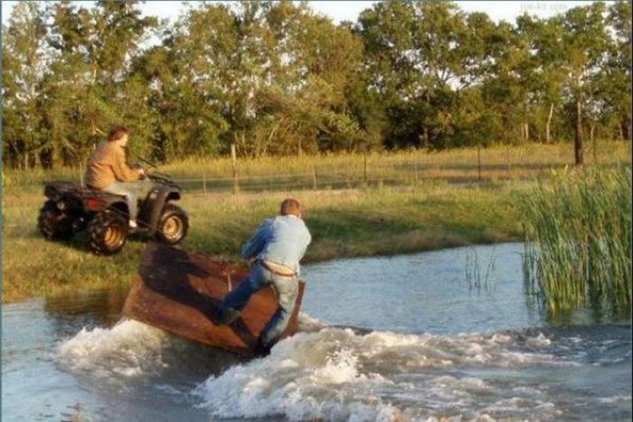 Anyone want to try this with me? I'll be the guy on the quad, you can ride the plywood.