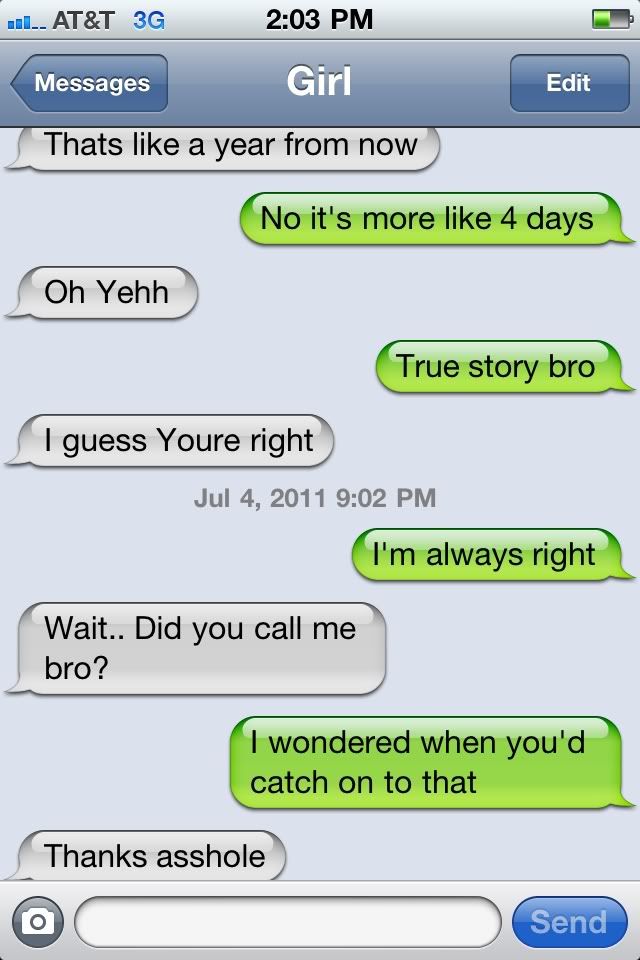 So, one of the girls I'm talking too. I love messing with her, thought I'd share this. The penny dropped a bit late with this one haha. And yes I changed her name to girl, I don't need you fb creeping