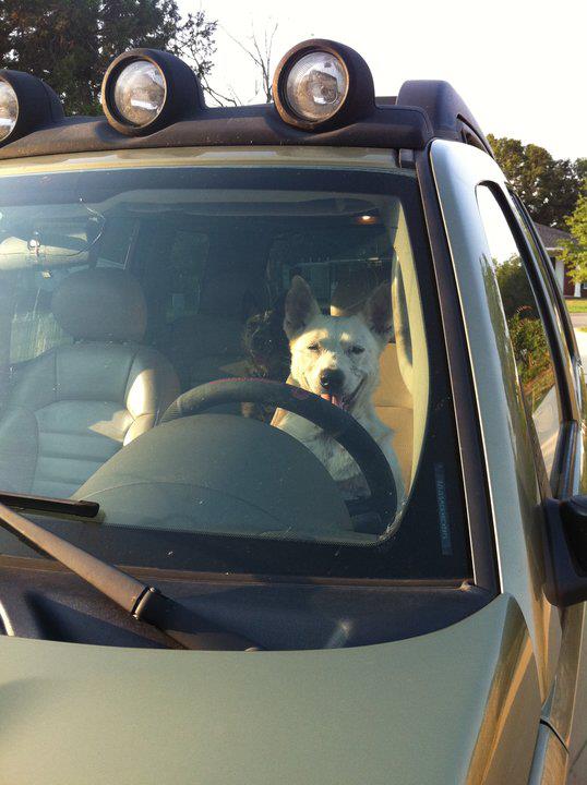 Boomer, He wanted to drive, Chloe is in the back seat!