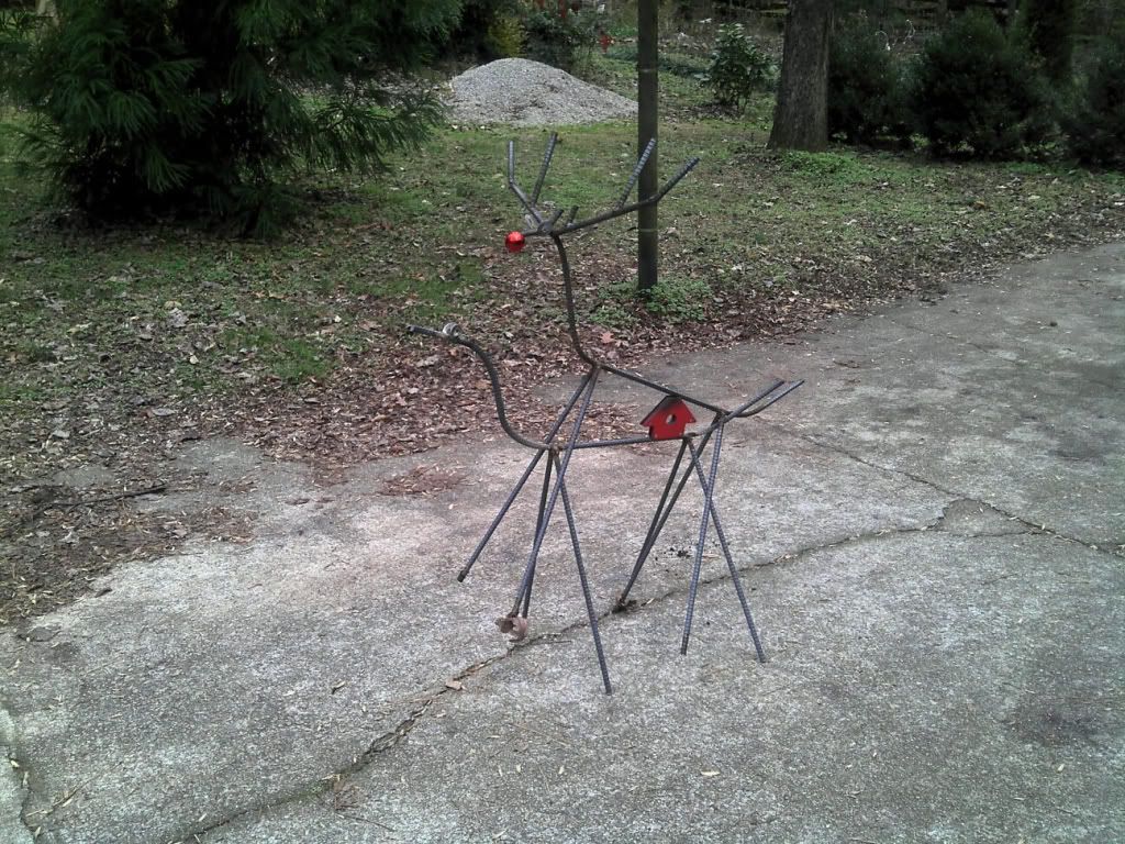I've thought about leaving them like that out in the front yard..... but since I welded up some antlers for the other one now...... I don't think anyone would want to see a couple of queer reindeer