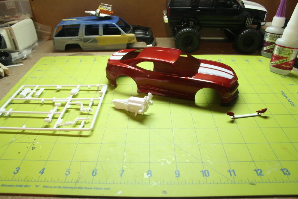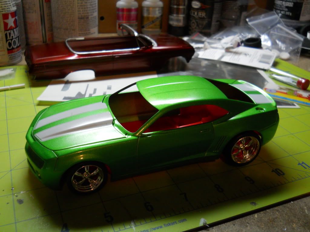 2010 Camaro SS - Dupont Spray Red Pearl (toyota color) with U-pol clear ![]() ![]() 2006 Concept -GM Code Synergy Green Metallic ![]() ![]() 2010 SS project, sinister style hood, and full ground effects package ![]() and a 2011 Convertible, started out as an AMT promotional model, I have stipped it all down and plan on adding the ground effects form a revell kit.