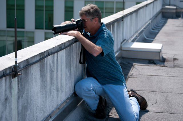 Well, even borrowing a 300 mm lens.. still too far away to get decent pictures of the nesting great blue herons. A friend took this photo of me trying to get a shot of the lil babies. I was using his lense and didnt' want to scratch it.