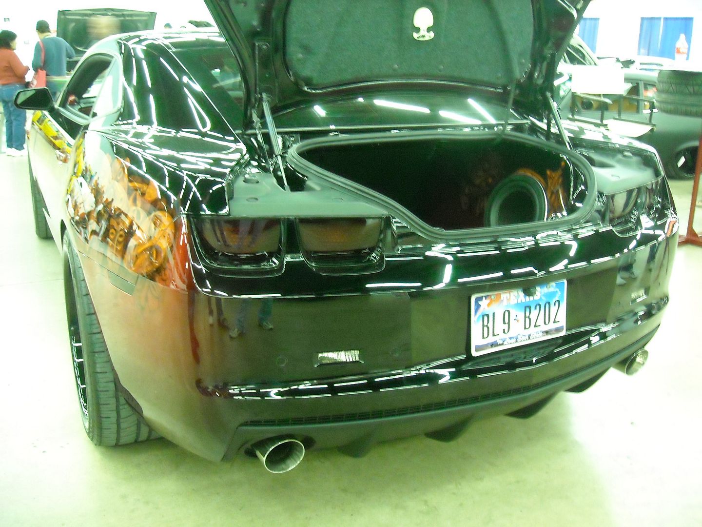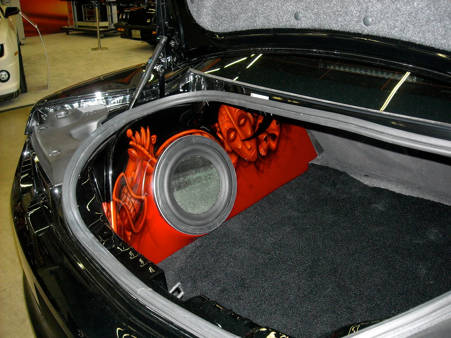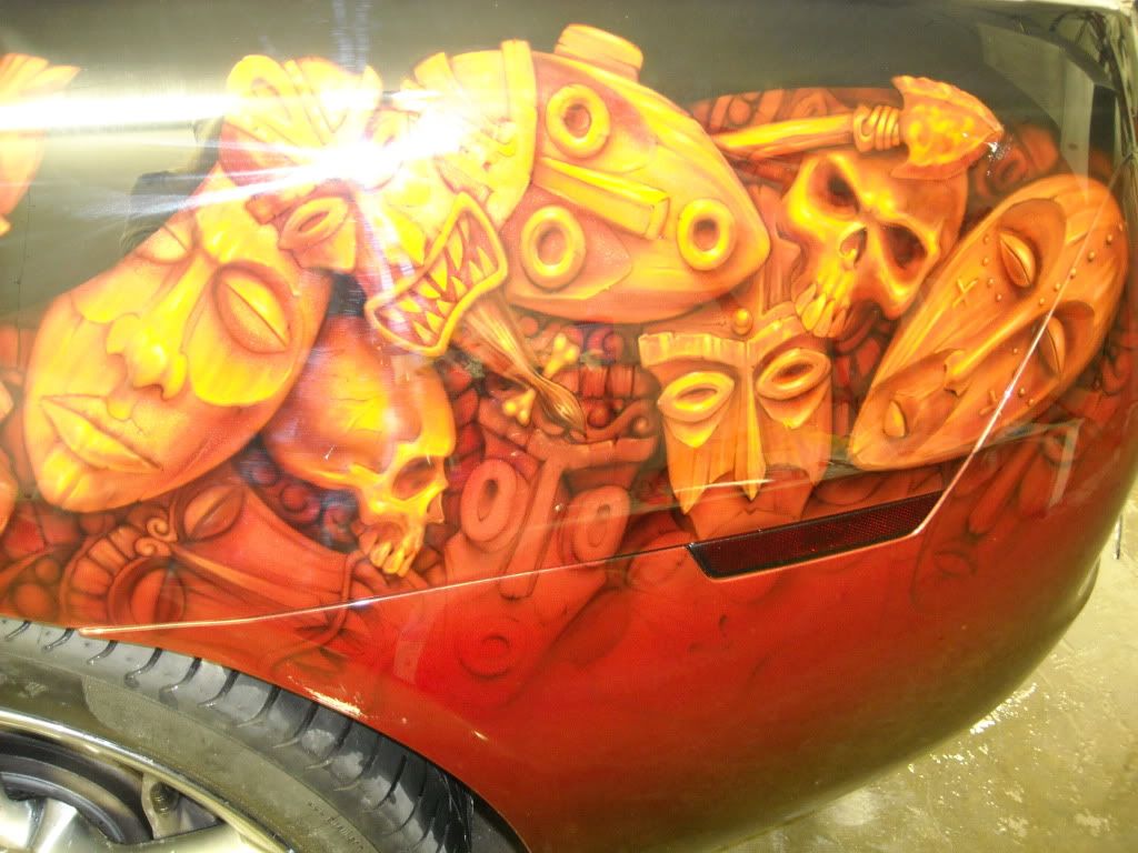 He used the money from selling me the Shelby to buy this black SS for his wife...they collect african masks so this was exactly what she wanted. The pictures are very glarey because the lights are so bright at the show but the detail in person is really awesome. Eventually when I can afford it I'll have him do Envy's trunk and maybe some custom door panels.