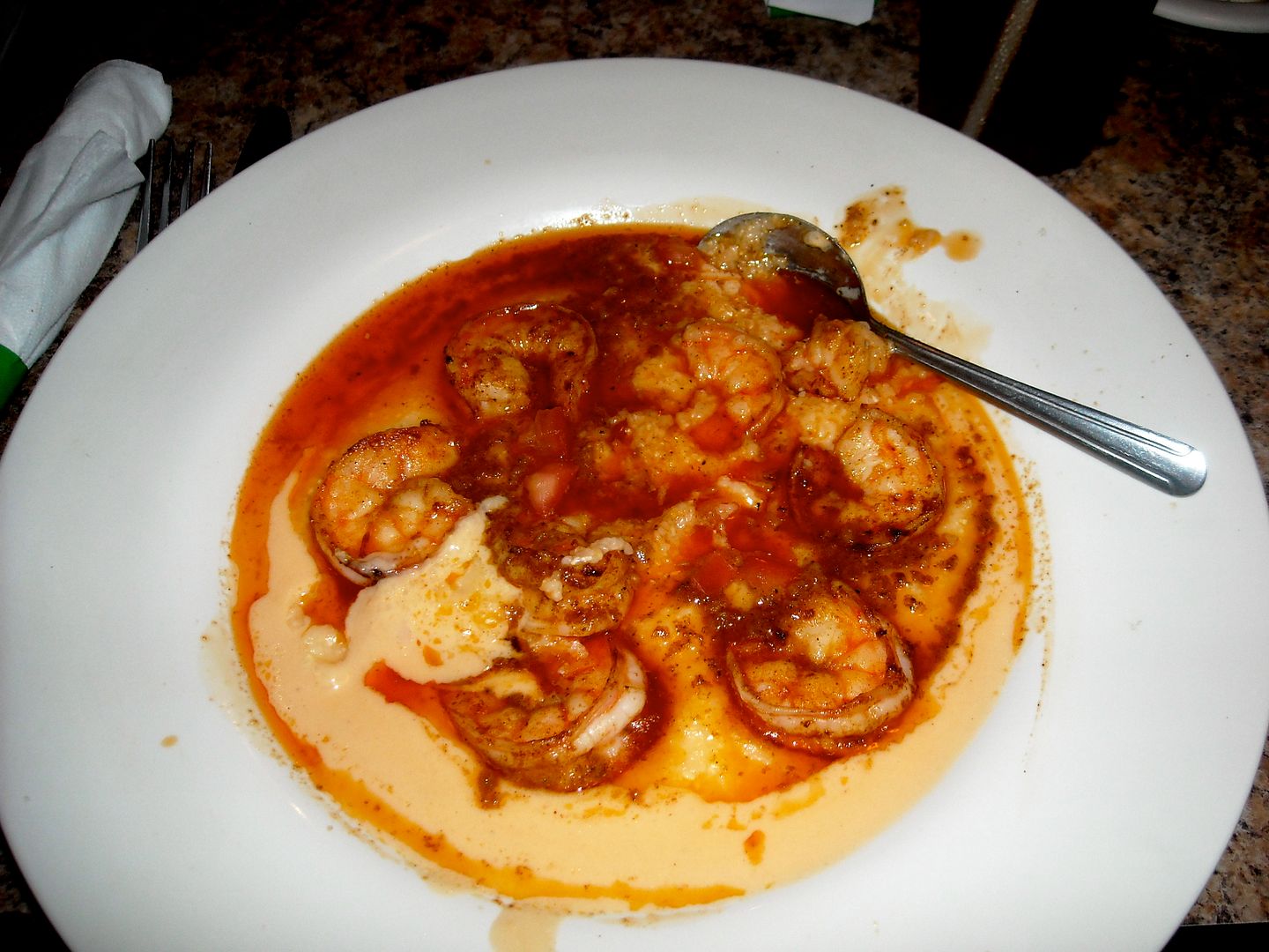The person below me would love to try this bowl of buttered barbeque shrimp and cheese grits?