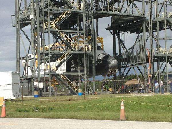 By 10:20 am, Endeavour was completely hooked up and began being hoisted 60 feet in the air. That was the final time Space Shuttle Endeavour's landing gear will ever touch Kennedy Space Center property.
