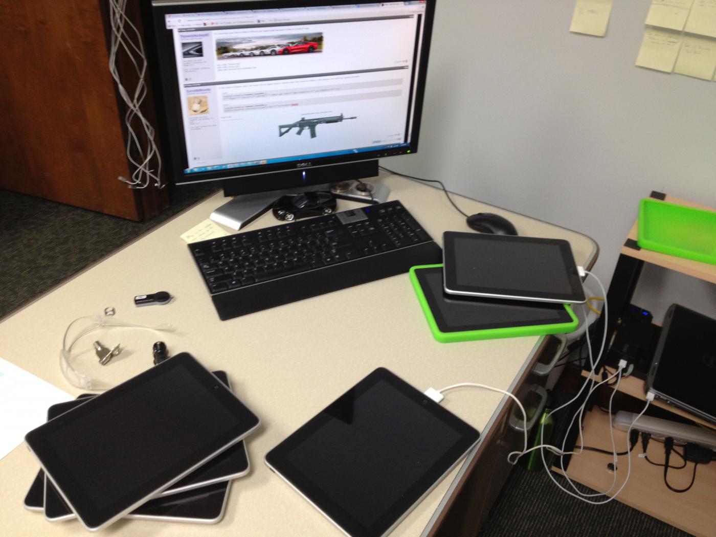 We need these to be working Saturday. I can't get the mail to work right on these things. For some reason our servers are rejecting them. We also have a new security app that I have to install, but it's not working either. If I do get lucky enough for the security app to install then our mail exchange server kicks me back out. I've been on and off the phone with IT support all day, they clocked out an hour ago. One of the Ipads is locked cause somebody changed the passcode on it and just can't seem to remember what it is I have one that dumped everything, I'm not even sure why. And Itunes only allows you to connect 5 ipads to one Itunes account......I have 6......F***!
