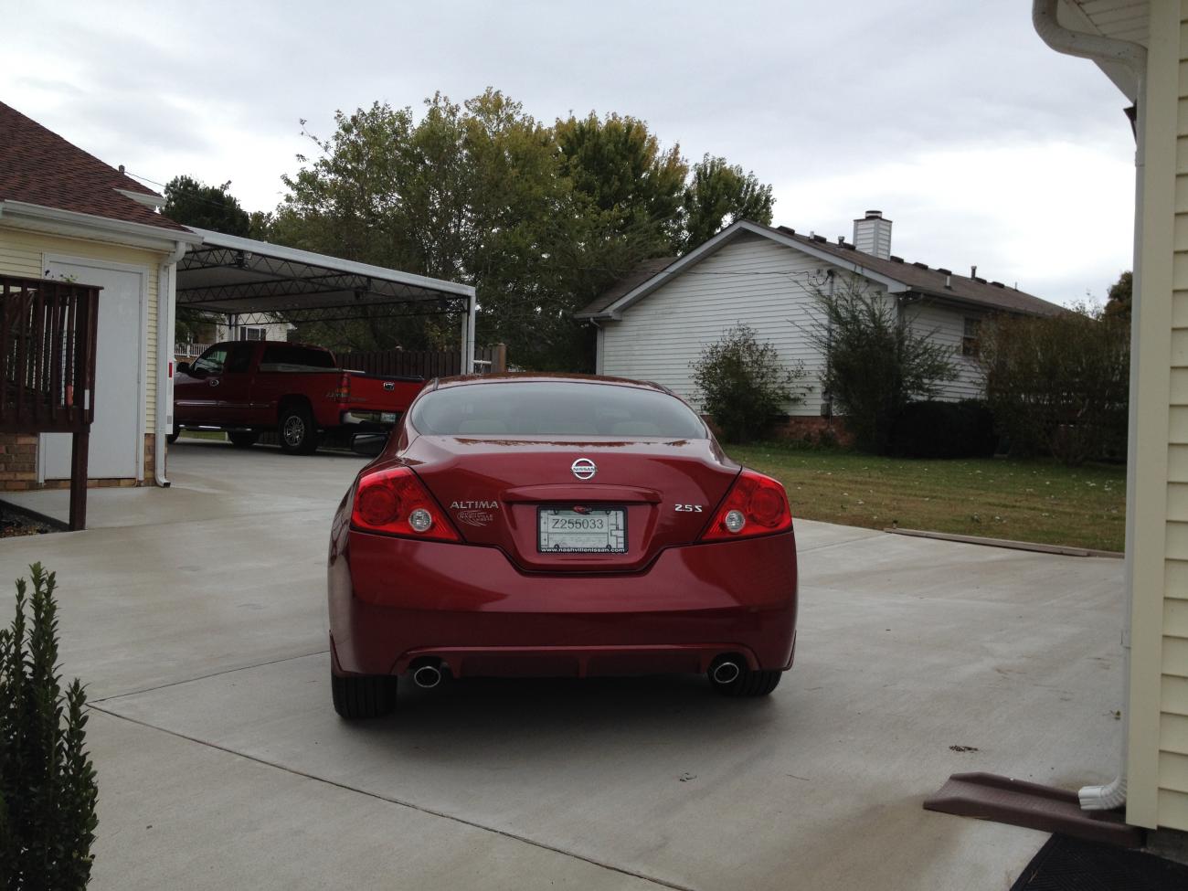Goodbye Crossfire & Yukon & hello Altima coupe. We had grown tired of playing musical cars in the driveway. Both the Crossfire & Yukon had some mechanical problems in need of attention, both needed tires and insurance on & all 7 of our modes of transportation was coming due. Yep, it was time to do some trading. I am pretty choosy about my cars so I had a hard time finding something I was happy with. I realy wanted to go with a chevy but I wanted a mid size coupe so???????????? no real Chevy options. I thought about a Malibu but I just did not want a 4 door & the Malibu seems a but under powered to me with it's size compared to it's 4 cylinder engine. If there had been a V6 option, I might have gone that way.