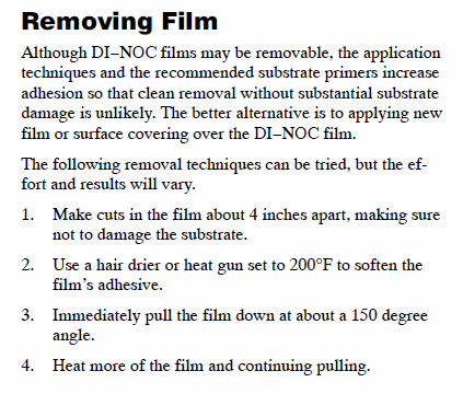 ![]() 3M's documentation on Di-Noc removal...