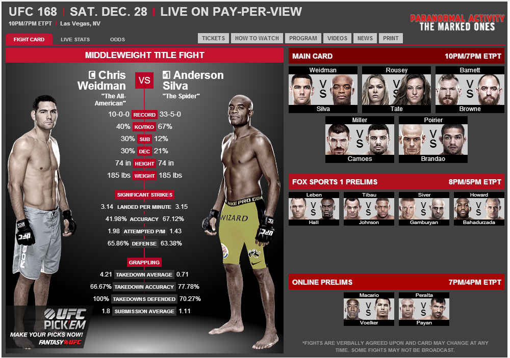 ![]() My picks: Silva, Tate, Browne, Miller, Brandao, Leben, Johnson, Siver, and Bahaduzada. The only reason I'm not wanting Weidman or Rousey to win is I want to see how they fight after they have a lose on their record.