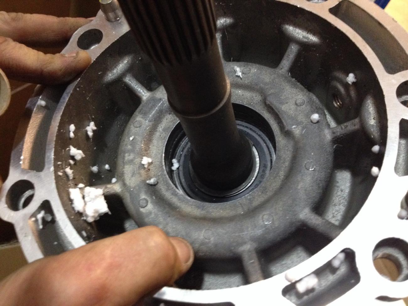 (Attached is the picture of the failed bearing from today on the engine side of the torque tube. It should be flush with the housing and not have metal shavings around it. It is displaced back about 1/2 inch. You can see a groove it cut about halfway down. Ignore the white packing foam.). Last edited by shamrock; 11-26-2014 at 03:42 PM. Reason: Updated with photo |