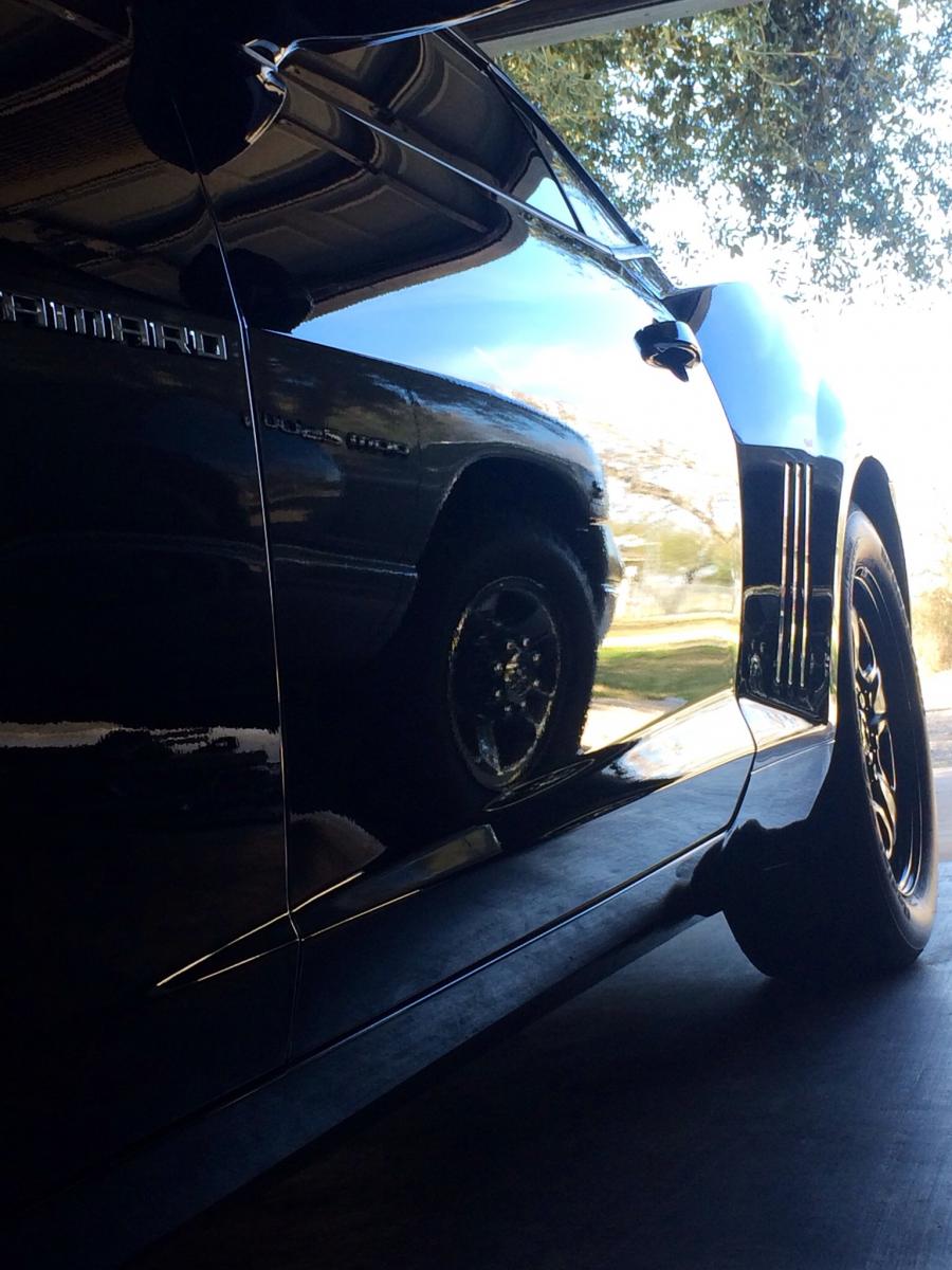 Naked fenders and swirls on the ass. Tell your dad you could use a detail job. Just knit picking there, no hard feelings. Lol. Looks good without the letters shire would be easier than cleaning between the "camaro" lettering now, but then again the chrome looks good too. Now that you wash it yourself here's some tips...having a black car water tends to dry on it pretty quick in the sun and in unfortunate situations will etch the clearcoat. Get up at 6 in the morning and wash when it's cool and cloudy still or late in the evening. Wash with extra soap and do a 2 bucket wash. Dry with a good microfiber or waffle weave, use an electric leafblower first btw! Oh yeah and don't piss your neighbors off they may cut their grass when your 1/2 way done drying... I washed mine yesterday too and had to finish drying in the garage! Damn bastards!!!!