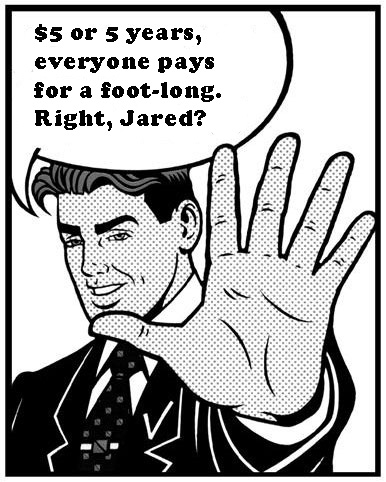 I have never stepped foot in a subway other than to work in their equipment. Jared should have his .50 cent inch long chopped off.