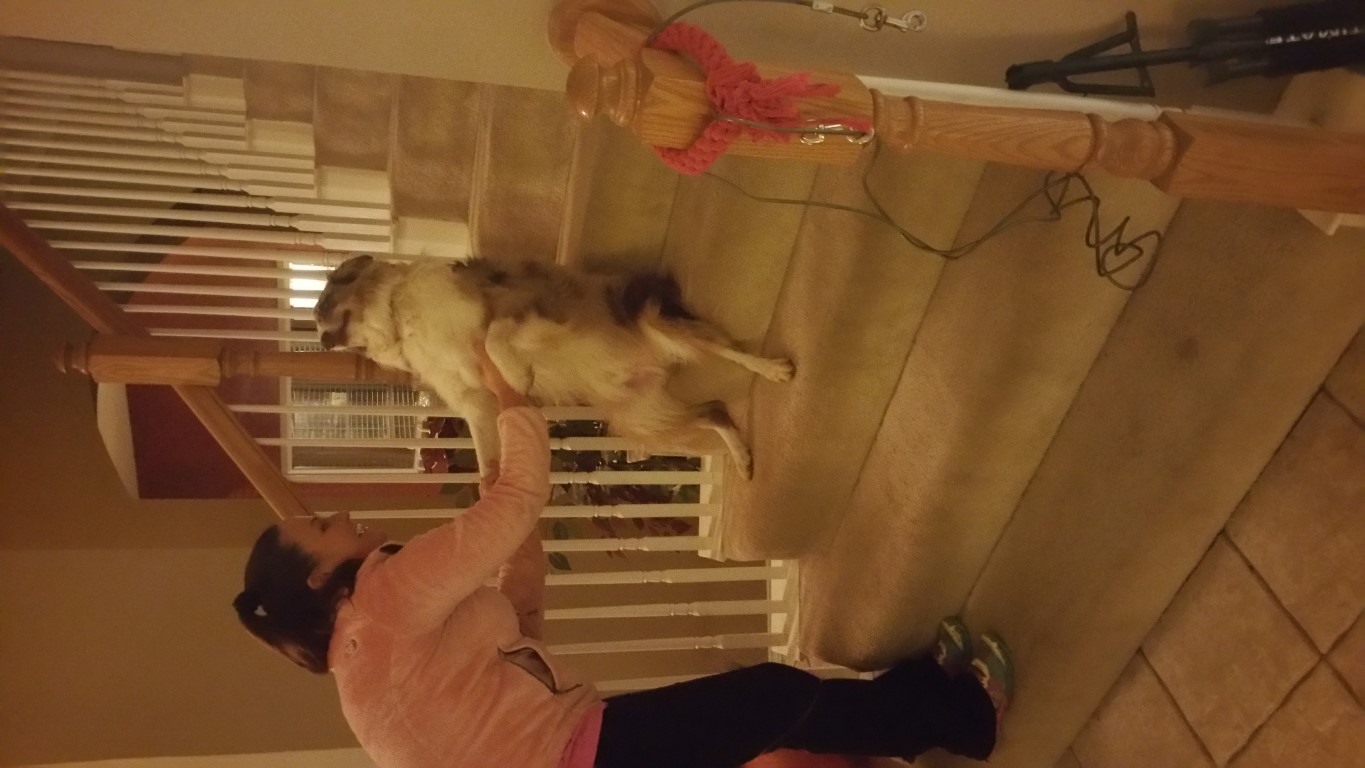 Jake-13 year old Golden Retriever Raina-1 1/2 (approximate) German Shepard/Bulldog mix.