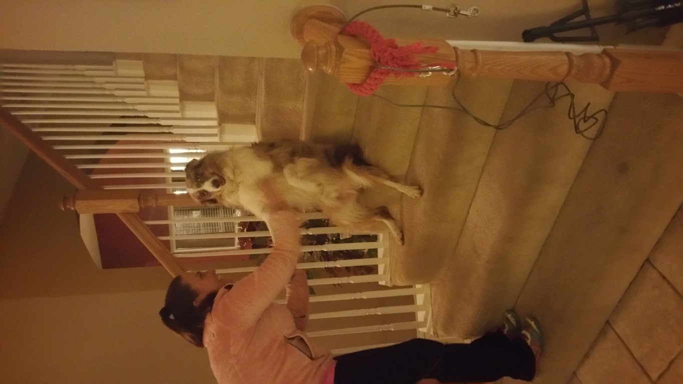 My daughter teaching my Aussie (Elvis -- my daughter named him -- don't ask ;o) to 'Sit like human' -- he likes it: