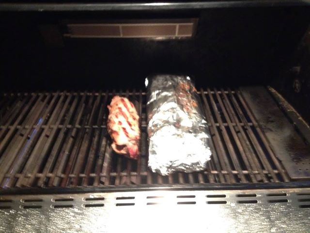 I know picture is not that good as it was raining Sunday, but Pork Tender loin with garlic onion and pepper potato foil pack. It was good.