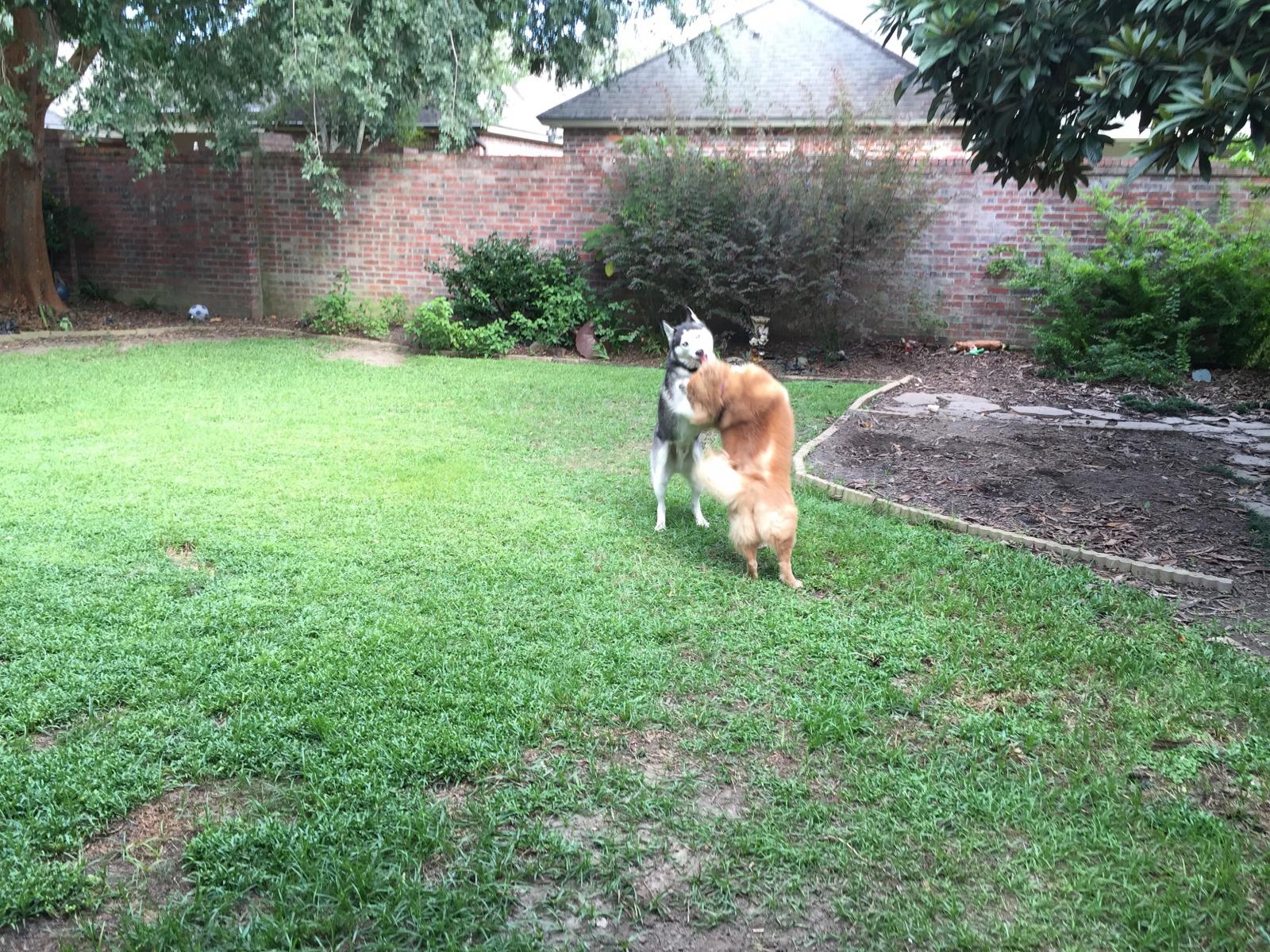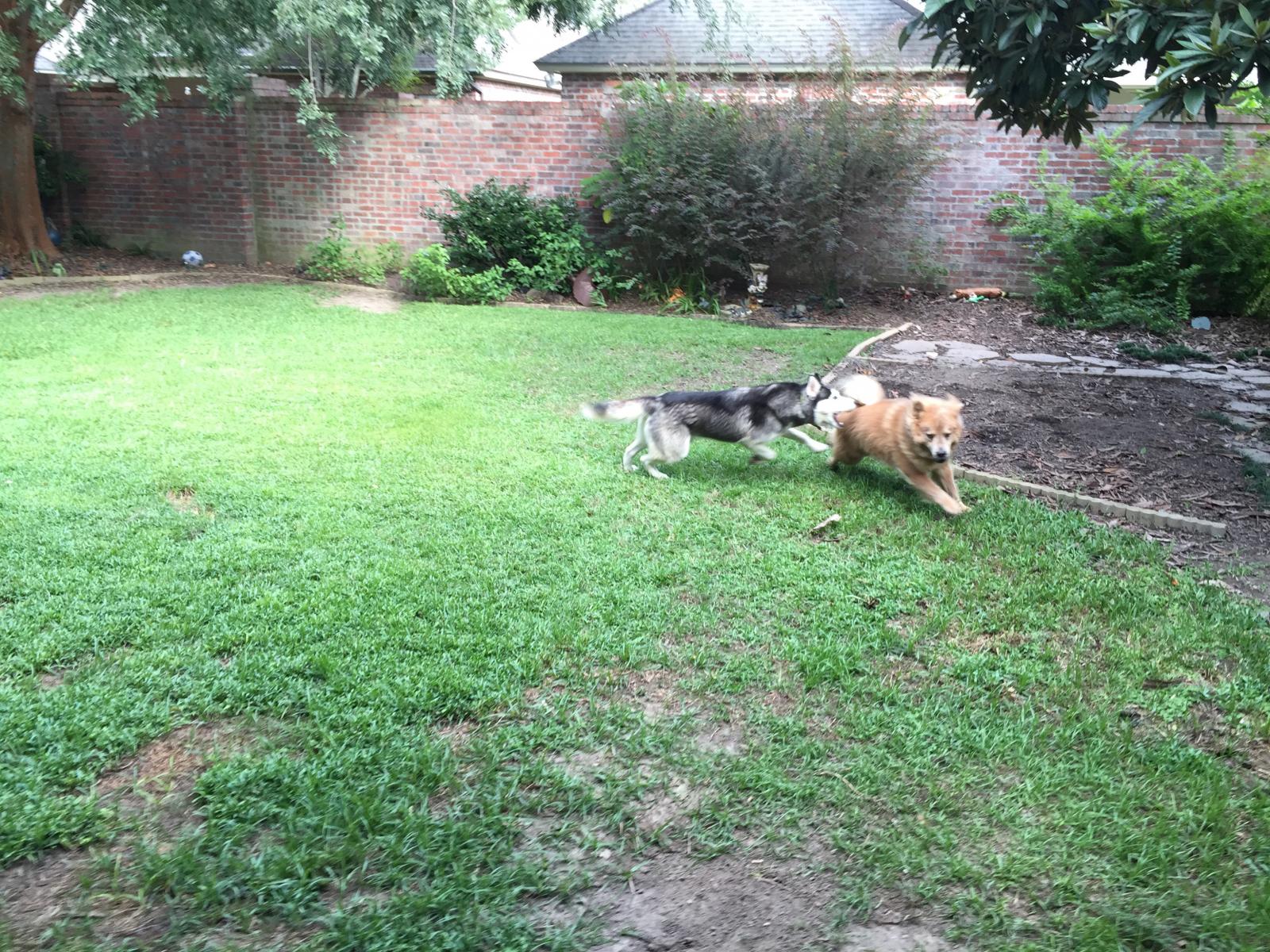 Buddy (the husky) has a pretty good left hook. We picked up Tina (chow - husky mix) from Houston Chow-Chow Rescue to be a playmate for Buddy. We seemed to have gotten pretty lucky. In the 3 years we've had them both, through 1,242 rounds of boxing, 3,114 miles of chase and 878 rounds of 'rastlin', we've never had a growl or snap.