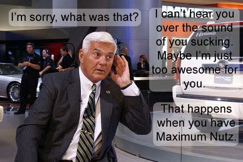 I'll take Bob on! I just want to race, nonetheless against Bob Lutz! woot! lol