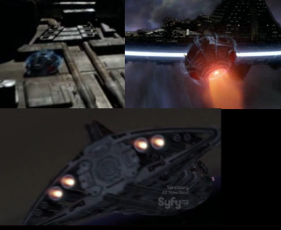 trying to upload a picture of both. on top of the fact after episode 3 the ship that leaves the destiny isn't docked on a docking pad or anything. it's just laying on the hull. yes I'm a nerd!
